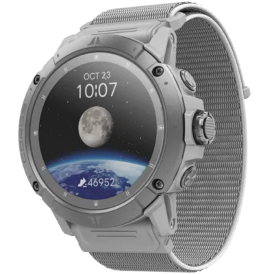 - Mặt kính sapphire, kích thước 1.4 inch MIP cảm ứng (64 màu), 280×280 pixels, hiển thị tối đa 8 trường dữ liệu